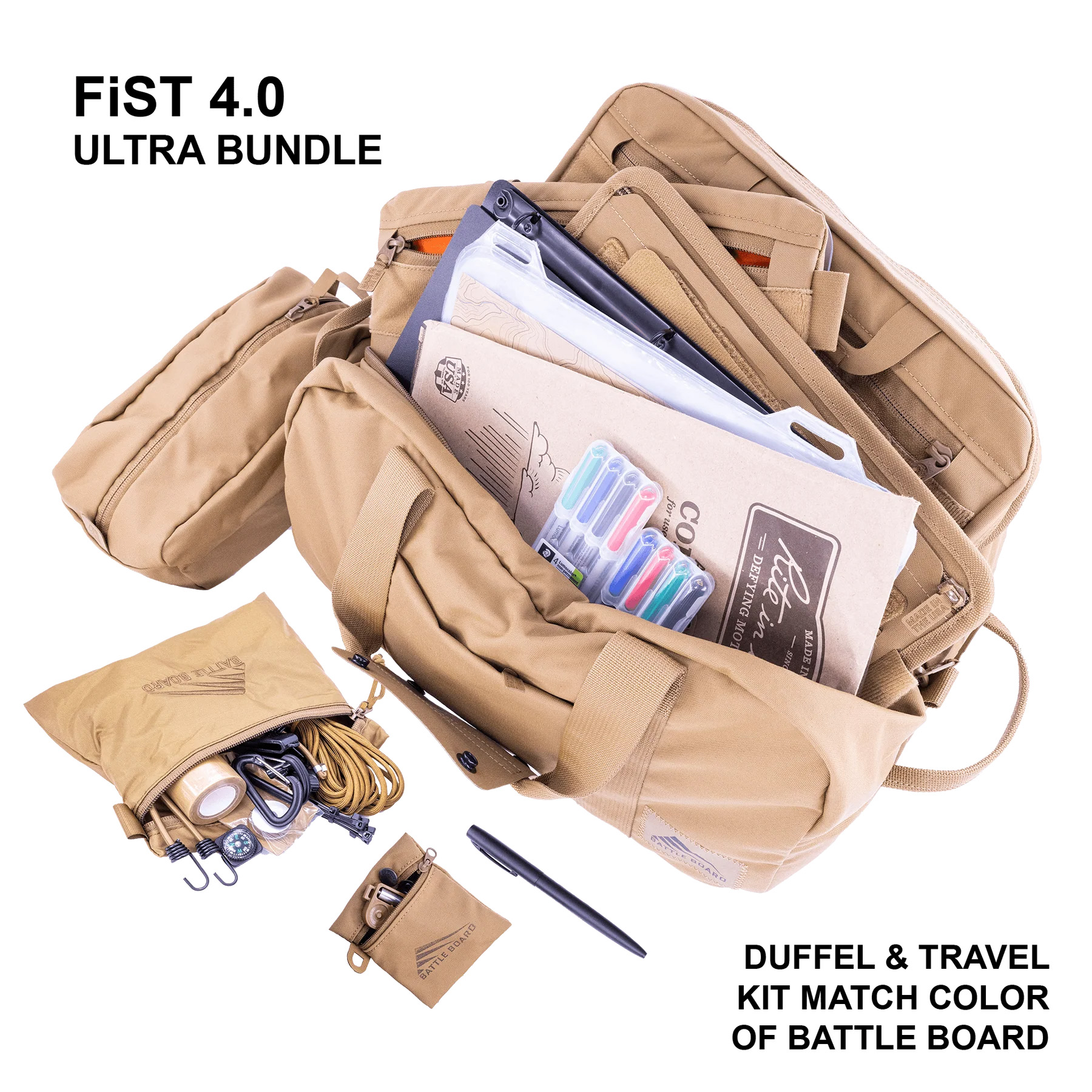 Battle Boards are designed as stand-alone tools, but also as components of modular and expandable systems. The Battle Board FiST 4.0 comprises the Expedition 4.0 and the Swift 4.0 – a system designed to provide two writing and display surfaces as well as one internal storage compartment. The two boards link together using the opposing loops and straps of our patented quick-change system. These features come standard with every board and enable you to mix and match any size and any type (Expedition or Swift) to create the setup you prefer.