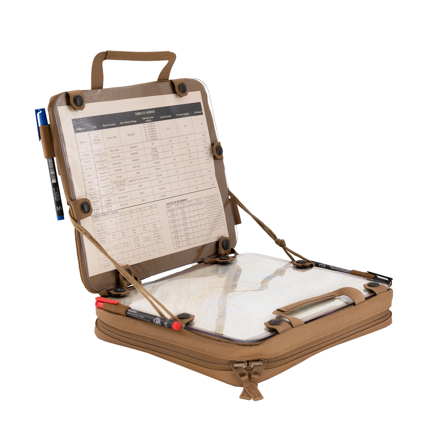 A FiST (Fire Support Team) controls the indirect fire whizzing over the complex battlefield. They refer to multiple maps, templates, and reports to manage the chaotic environment filled with artillery, bombs, and mortars to support the troops on the ground. Oftentimes, FiSTers use both a map and a battle tracking template at once, hence the need for two surfaces. Find the configuration that works best for your mission.